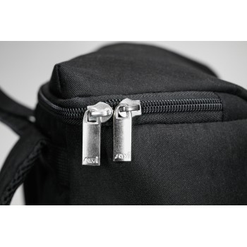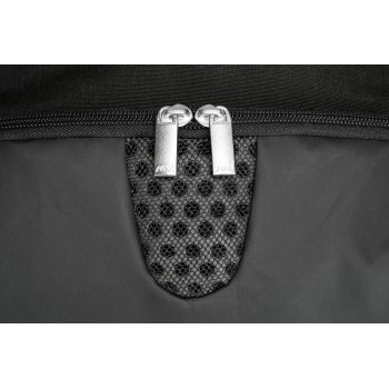 Compartiment de rangement au bas du sac à double fermetures éclaires.